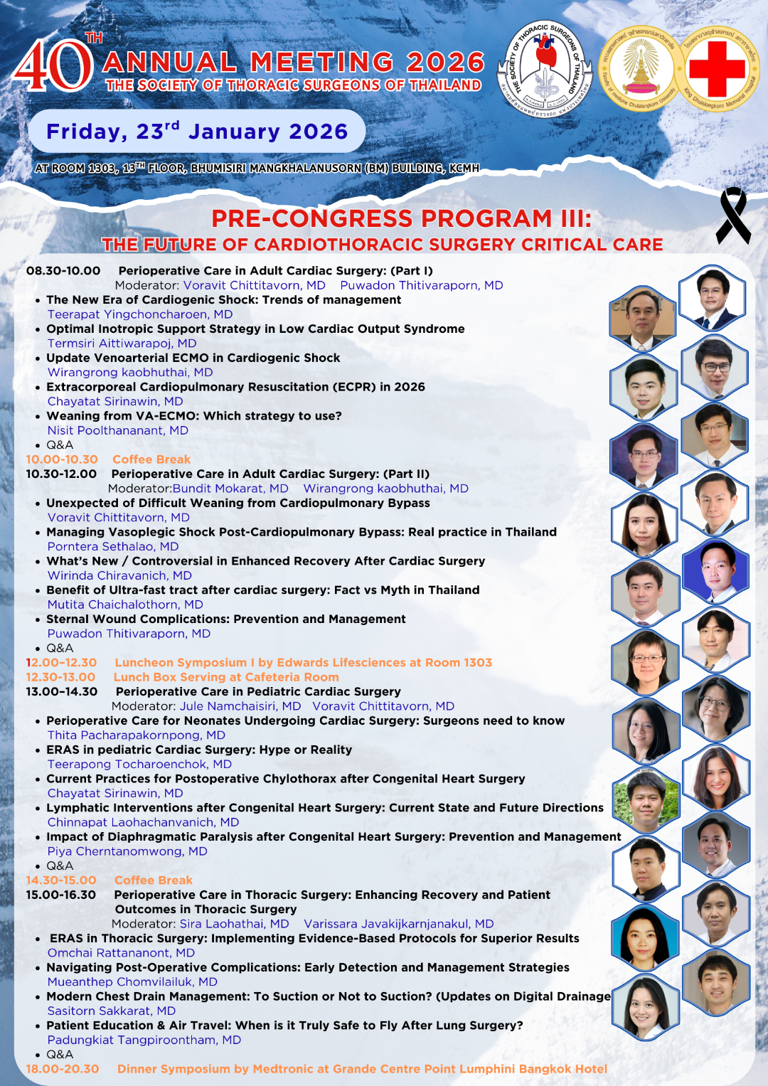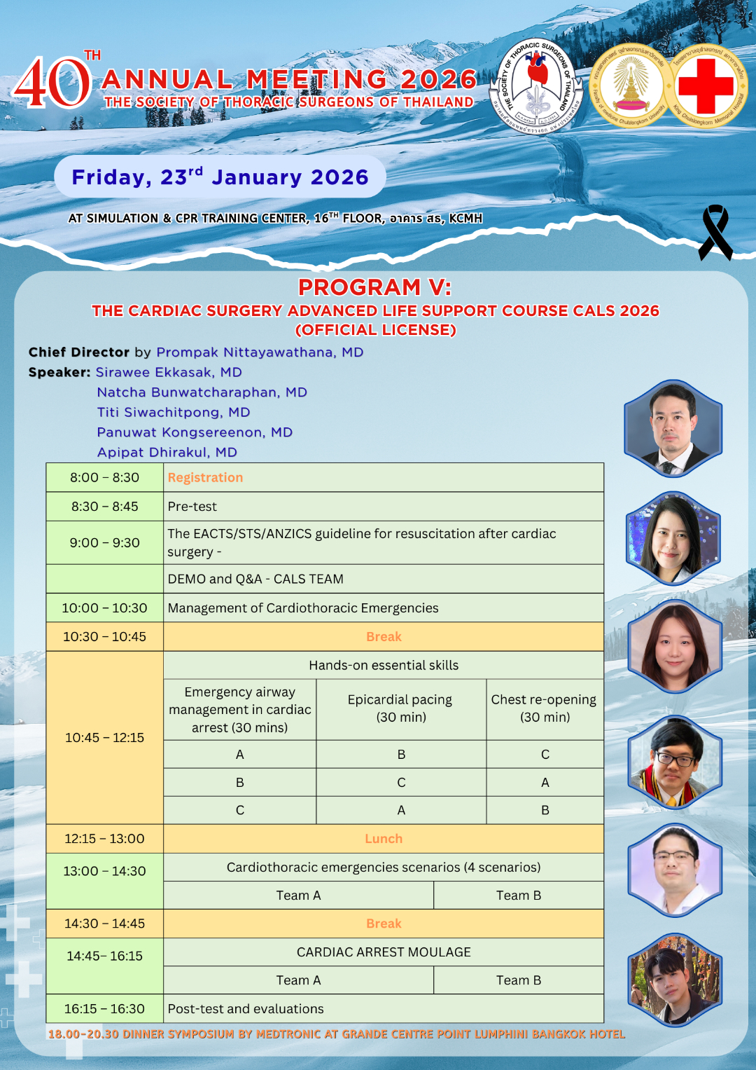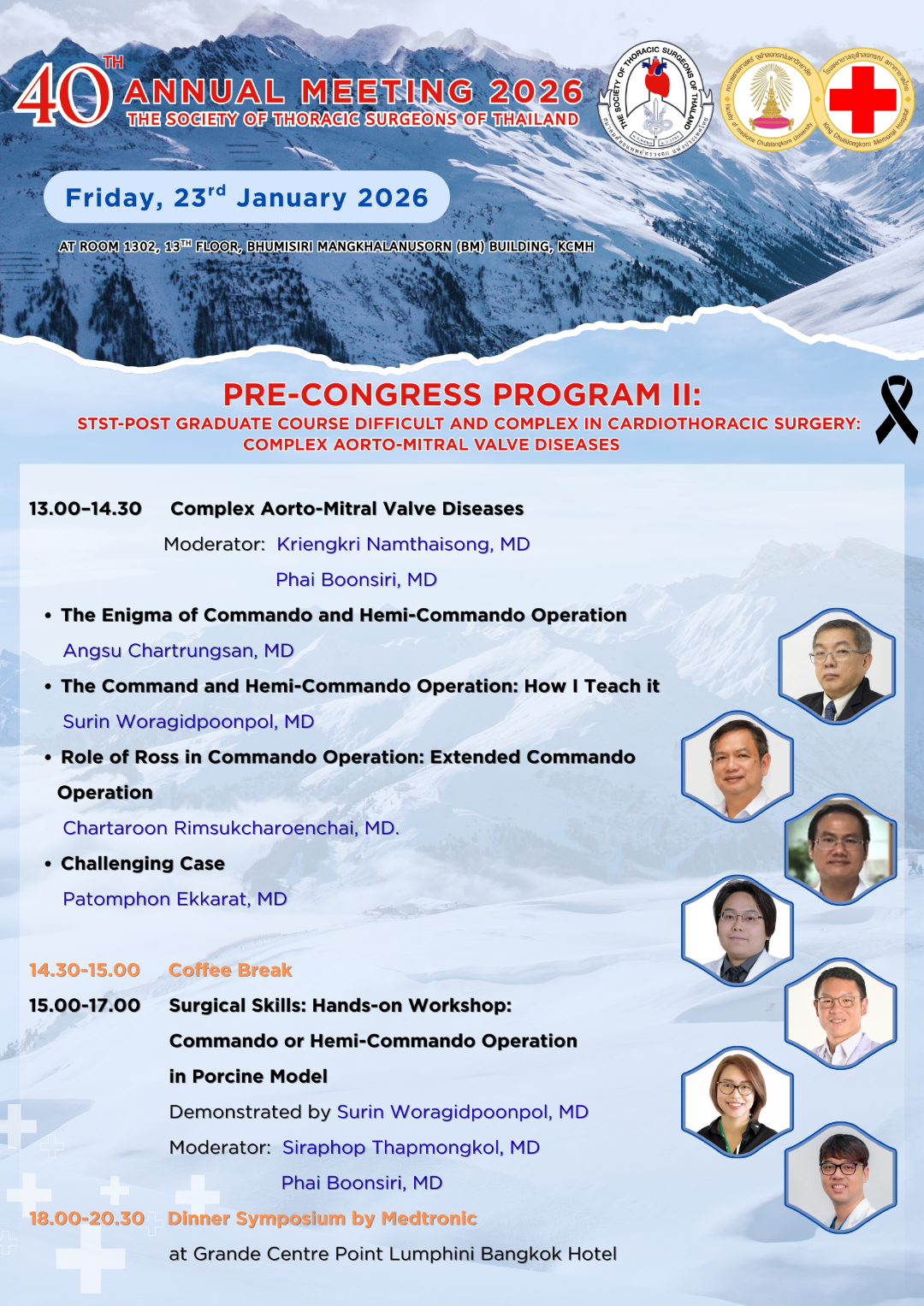 ด้วยสมาคมศัลยแพทย์ทรวงอกแห่งประเทศไทย จะจัดการประชุมวิชาการประจำปี 2569 ครั้งที่ 40 (40th Annual Meeting 2026) ในหัวข้อComplex Cardiothoracic Surgery Masterclass: Current and Future Challengesในวันที่ 23 – 25 มกราคม 2569 ณ โรงแรม จุบีลี เพรสทีจน์ รัชดาภิเษก เขตห้วยขวาง กรุงเทพฯ